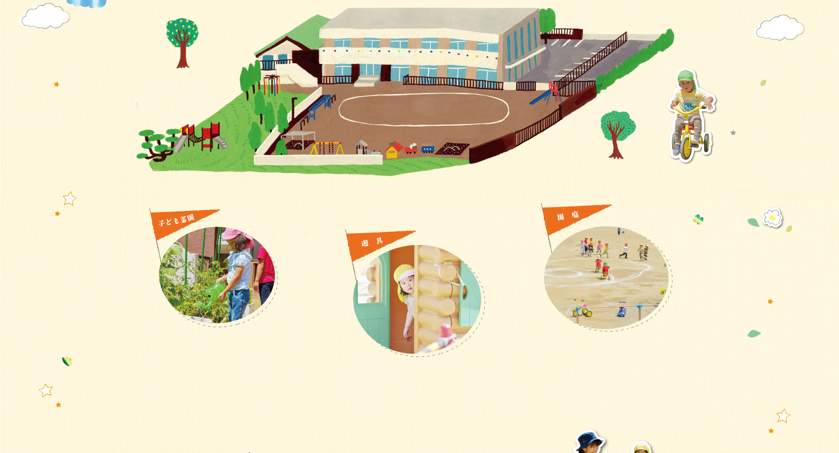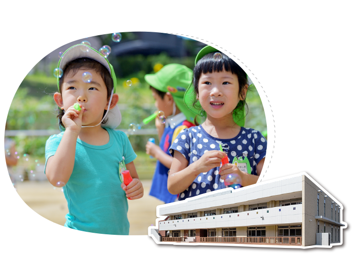 ピカピカの施設、広い園庭、カラフルで楽しい遊具が子どもたちの笑顔を待っています。